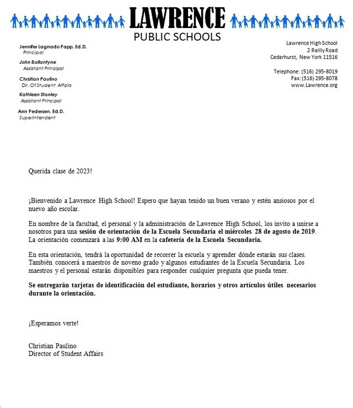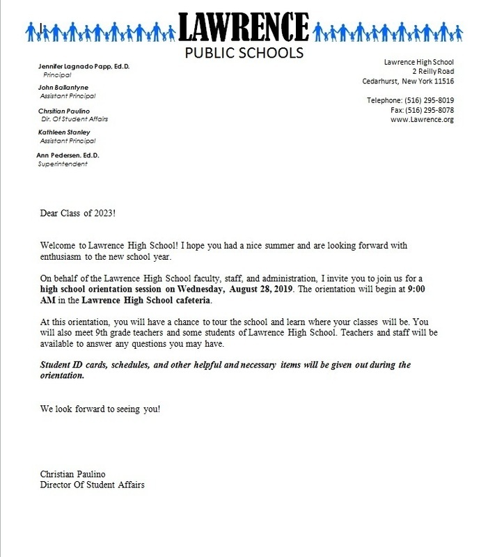 The letter below contains more information about the orientation. Freshman will receive their schedules & some additional resources to help make the first day a success!