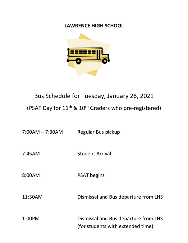Bus Information for PSAT Exam- Tuesday 1/26/21