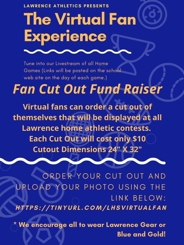 Virtual fans can upload a photo and order a cut out of themselves that will be displayed at all Lawrence home athletic contests. Each cut out will cost $10 (with all proceeds supporting Lawrence Athletics). The cut out dimensions will be 24" X 32"