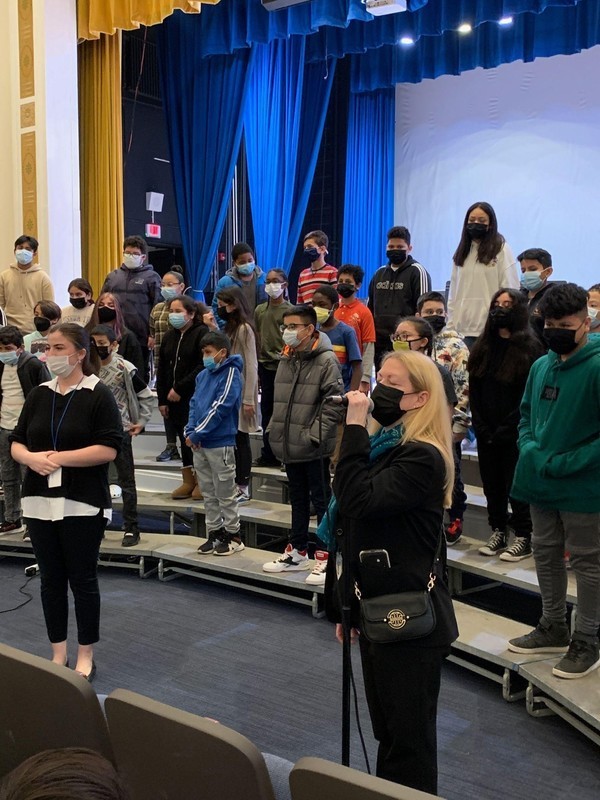 Photo 1: Lawrence Elementary chorus with Ms. Berkeley, with an introduction by Pam Gallopini, District Music Coordinator.