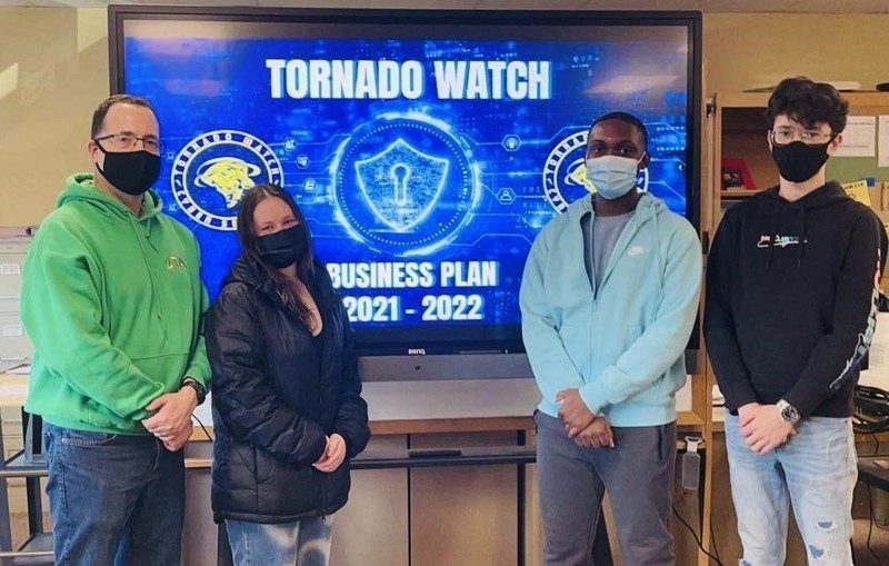 Lawrence High School students, Xian Scott, CEO of Tornado Watch, Jeni Pomper, COO of Tornado Watch, and Ilia Urgen, CFO of Tornado will compete virtually on Tuesday, February 15, 2022.