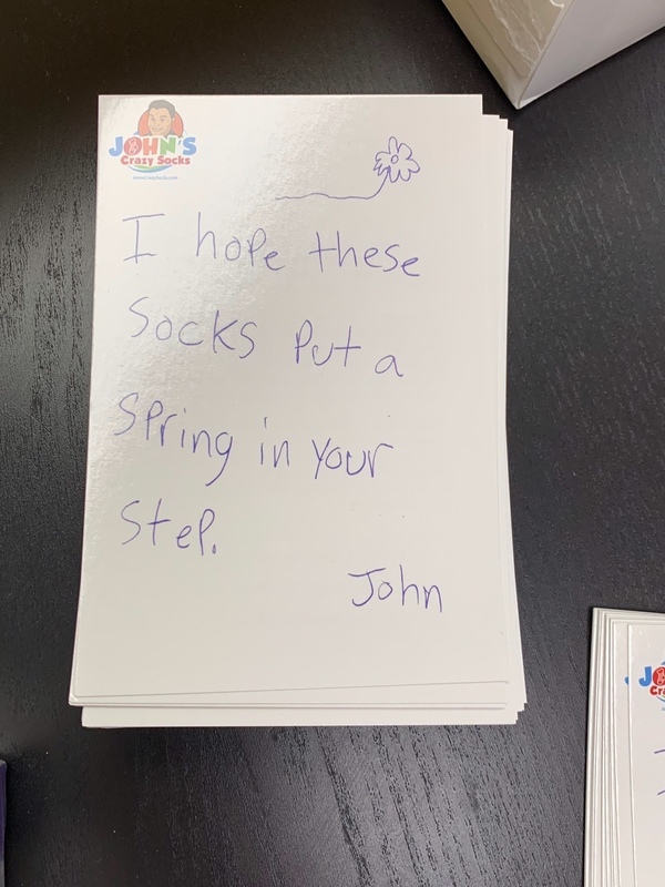 The staff and students learned their story, got a tour of the facility, practiced some of John's Crazy Socks work tasks, and the students even went home with a free pair of 'crazy' socks!